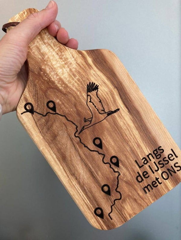 Geinspireerd op het programma "Langs de Ijssel" Hebben wij een mooi borrelplankje gemaakt. Handgebrand door de medewerkers van ONShandelshuis.