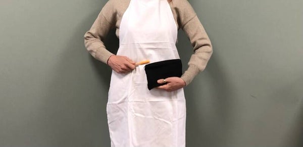 Dit leuke pakketje met daarin een schort. Je kinderen of kleinkinderen kunnen deze naar eigen wens versieren met de bij geleverde etui met stiften.